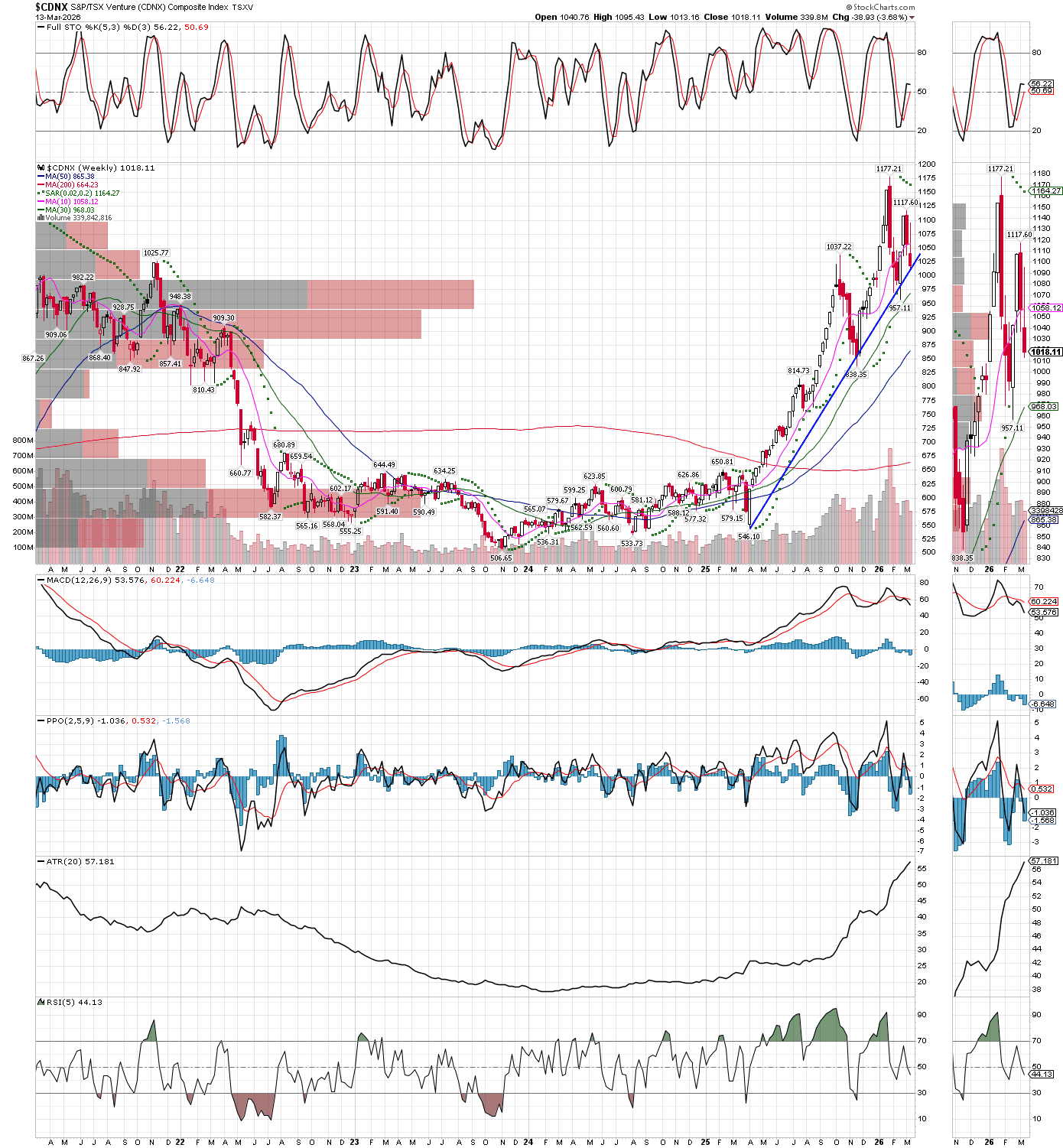 And note this next chart is already over one week old, as the $CDNX closed Friday down at 911